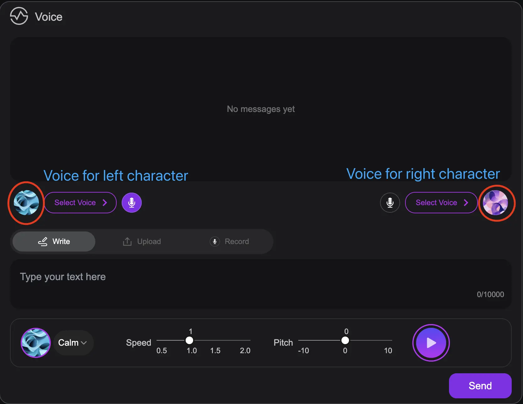 2. The microphone icon on either side indicates which speaker is currently active for input. Click the microphone to switch the active pet.